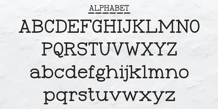 Adler is a free typewriter font with heavily distressed characters, replicating the text of a heavily used classic typewriter. If you’re looking for a heavily smudged and grungy typewriter font, this is the font you want.